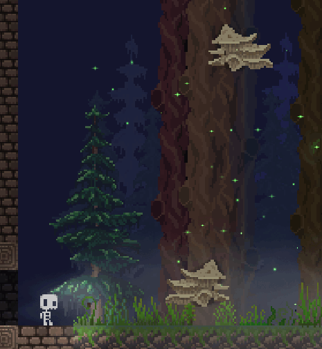 - August 05, 2021 by BadSad#skeli, #platformer, #forest, #fantasy, #pixel art, #retroHello :) Yesterday I started redesigning the 5th level of Skeli. I made mushrooms on the trees that act as jumping/bouncing pads. The player can jump on them and bounce off them to get to high places... Continue reading